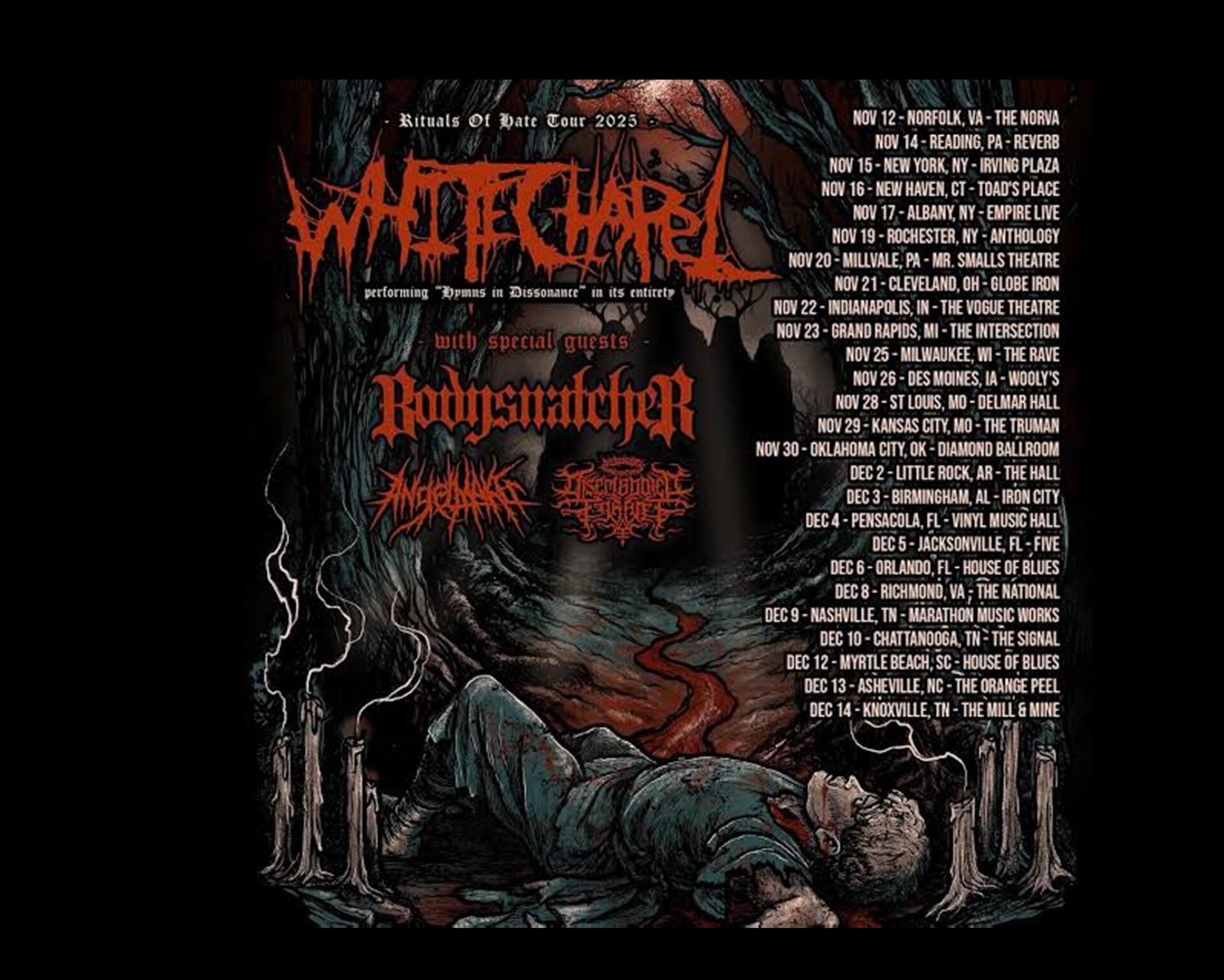 Featuring Whitechapel with guests Bodysnatcher, Angelmaker, and Disembodied Tyrant